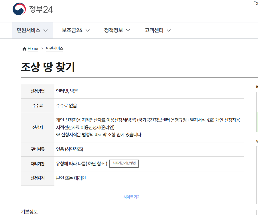 1. 조상 땅 찾기 서비스